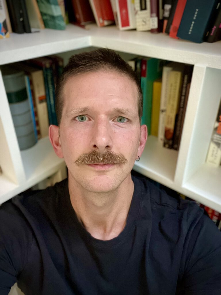 …werd door een andere Fantasticongenodigde de Nederlandstalige SF/F/H-poel ingeduwd, waar hij sindsdien rondploetert, verwonderd om zich heen kijkt, en het hoofd boven water probeert te houden door op tijd en stond een verhaal te schrijven. In 2026 komt zijn eerste bundel uit bij uitgeverij De Kremkoll, en is hij uitgenodigd (uitgenodigd!) op Fantasticon. Ja, het water voelt best lekker – kom erbij!