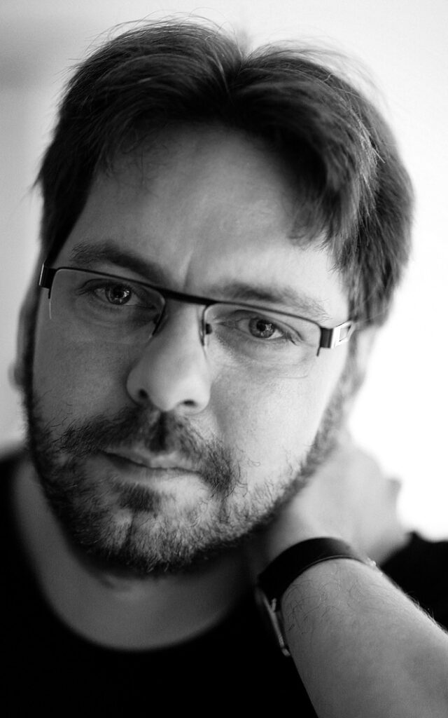 …herinnert zich dat een verhaal dat hij schreef in de vierde klas door de meester werd voorgelezen. Toen was hij 10 jaar en sindsdien is hij schrijver. Nadat hij op de middelbare school vooral Dungeons & Dragons-avonturen schreef, ging hij op de kunstacademie tekenfilms maken – schrijven en tekenen – en na zijn afstuderen maakte hij daar zijn beroep van. Het bloed bleef echter kruipen en 15 jaar later schreef hij zijn eerste sciencefantasyroman Lege steden.